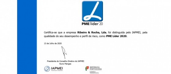 É com orgulho que vemos renovada, de forma consecutiva, a distinção de PME Líder referente ao ano 2020.
