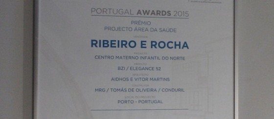 A Ribeiro & Rocha foi premiada na área da Saúde com a obra "Centro Materno Infantil do Norte".